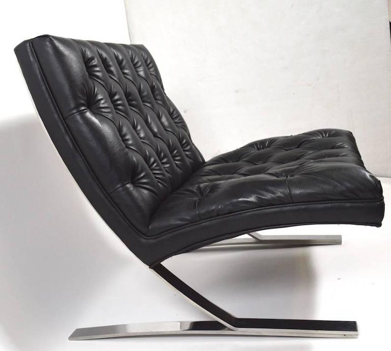 Pair of vintage modern barcelona style lounge chairs by selig.